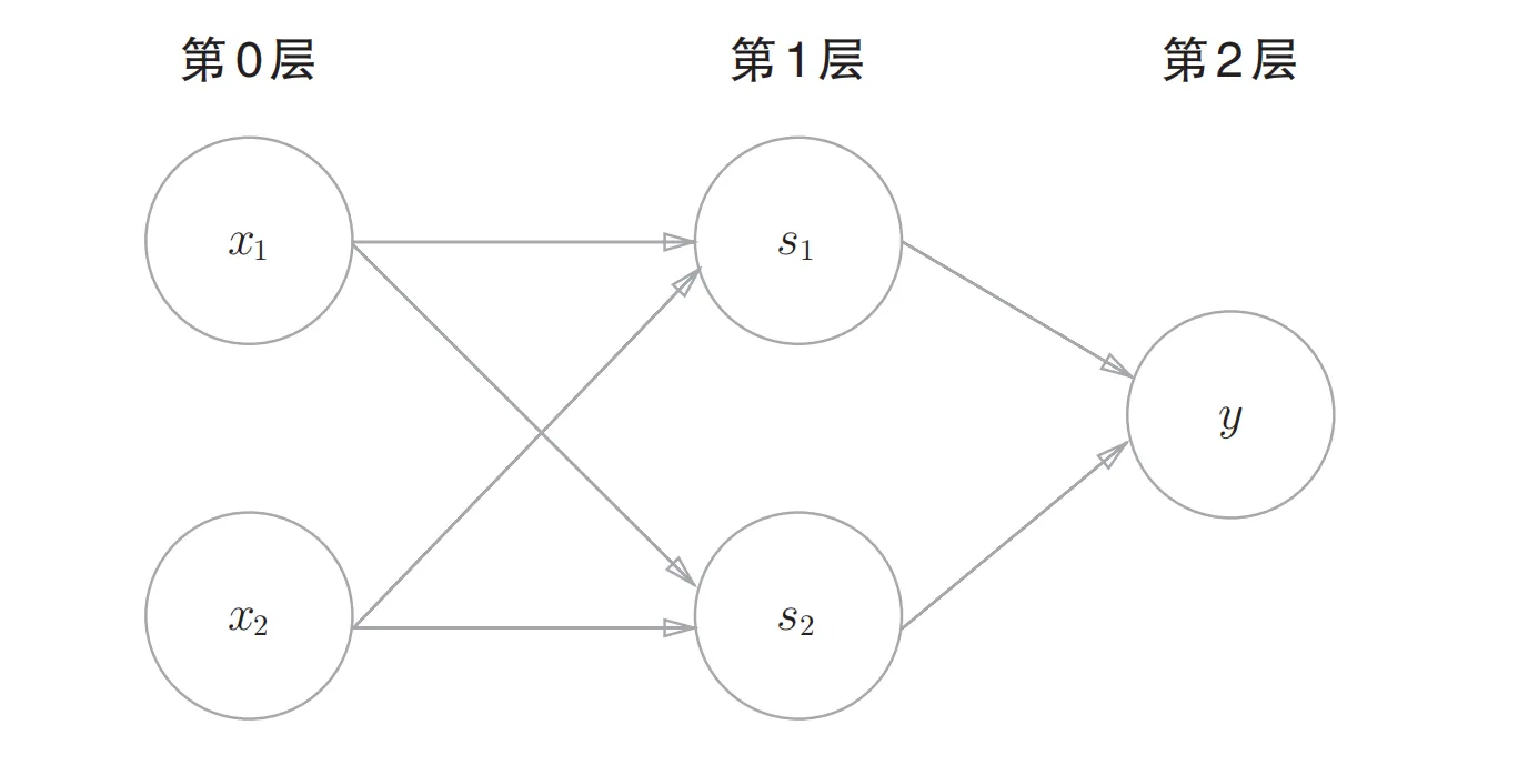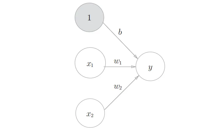 感知机接收多个输入信号,输出一个信号。这里所说的“信号”可以想象成电流或河流那样具备“流动性”的东西。像电流流过导线,向前方输送电子一样,感知机的信号也会形成流,向前方输送信息。但是,和实际的电流不同的是,感知机的信号只有“流/不流”(1/0)两种取值。1