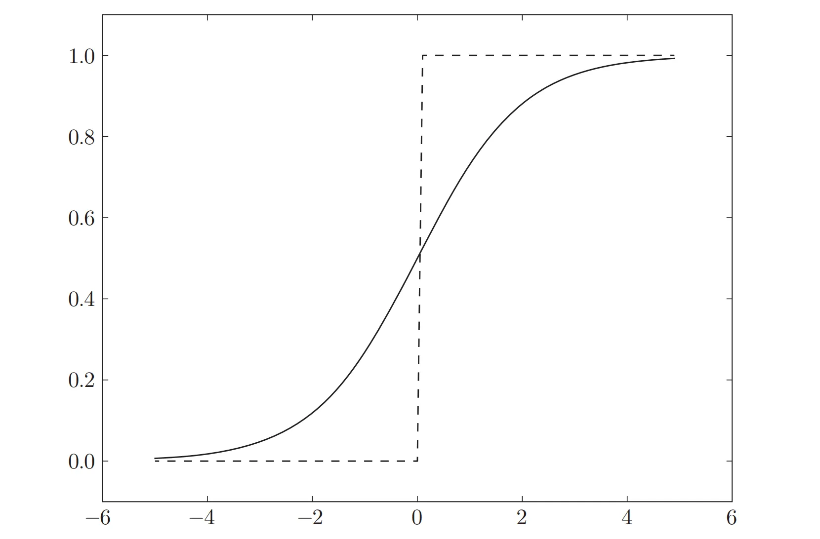 可以发现,二者去区别在于,sigmoid 函数很光滑,可以取到(0, 1)区间内任何一个实数,而阶跃函数只能取到 0 或 1. 因此,我们在感知机中使用阶跃函数,在神经网络中,则趋向于使用光滑的激活函数。